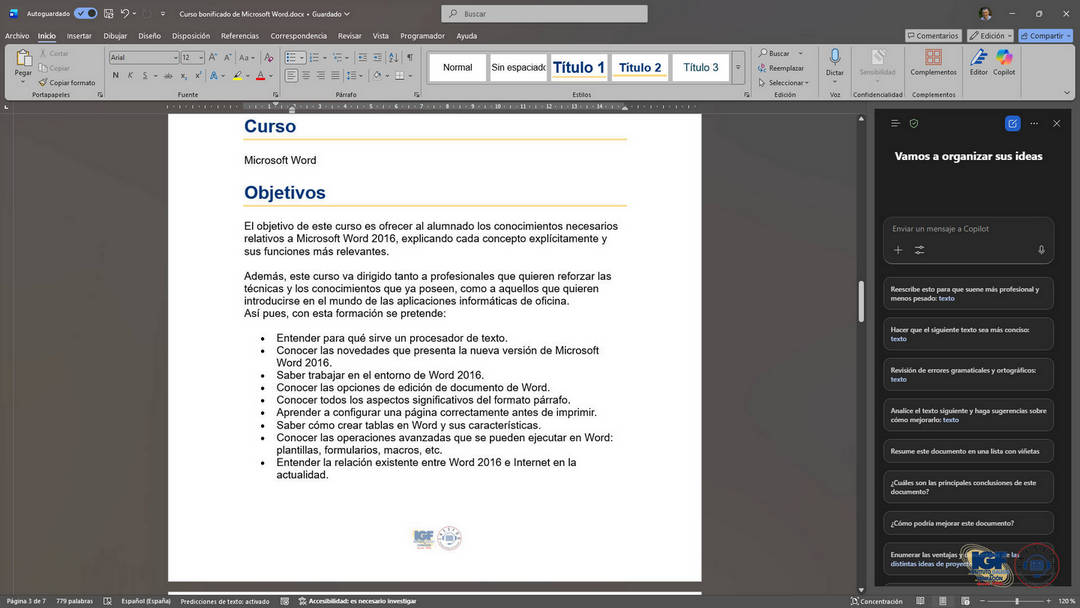 Más información sobre el curso bonificado de Word