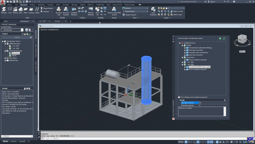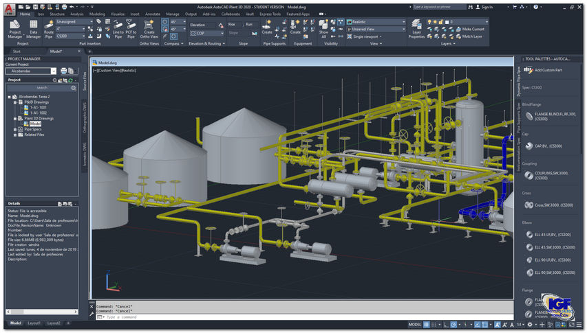 A continuación, tienes una muestra de algunas de las tareas realizadas por los alumnos del curso de AutoCAD Plant 3D